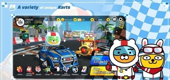 超萌卡丁车中你可以看到各种层层挑战地图,多人一起竞技飙尘,展现自己的真是技术操作体验。