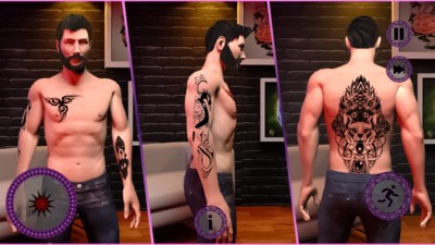 在这个游戏中,您将有一个纹身摊位模拟器,那里会有很多顾客一个接一个地找您。在其中每一个上展示您的纹身艺术。在这家纹身店里准备很多乐趣。