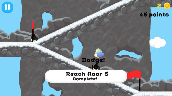 1、玩家在游戏中需要滑动屏幕来控制角色不断的向上攀登,登顶即可过关。