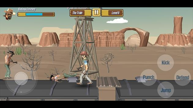牛仔大战黑帮这是一款让玩家扮演牛仔1V1战斗的横版动作射击游戏,一个虚拟摇杆和四种不同攻击方式的按键,操作你的角色消灭黑帮的所有敌人,操作简单易上手,画面风格独特,快来下载游戏吧。