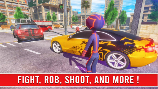 3、火柴人不断的提高自己,驾驶汽车来追逐匪徒,我们要维持这里的正义。