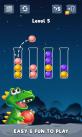 v233恐龙蛋分类游戏是一款益智类游戏。五颜六色的恐龙蛋被随机放置在管内,你需要将这些杂乱无章的恐龙蛋按颜色分类,相同颜色的放到同一根管内即可。难度随着关卡增加而增加。
