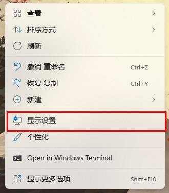 2、我们在桌面上右键,然后选择“显示设置”,就可以查看目前电脑的显示分辨率是多少