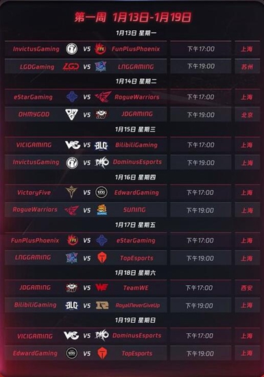 2020《英雄联盟》职业联赛(以下称:LPL)春季赛即将于1月13日在上海虹桥天地演艺中心)拉开新赛季的战幕——FPX、RNG、TES、BLG、EDG、iG、LNG、SN、WE、JDG、DMO、V5、RW、LGD、VG、OMG、eStar等17支队伍将在其后三个多月的时间里,先后在上海、杭州、成都、西安、北京、苏州六座主场城市展开常规赛激烈对抗,争夺季后赛资格、联赛冠军,以及进军2020英雄联盟季中冠军赛的机会。