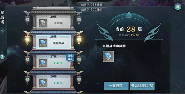 1、玩家通过爬塔的形式过关斩将,获得奖励。