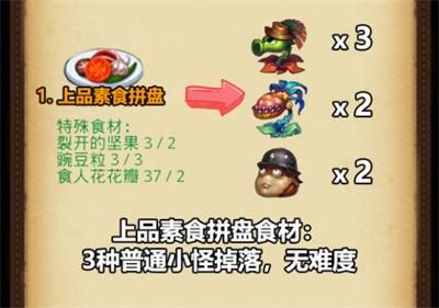 特殊食材:裂开的坚果、豌豆粒、食人花花瓣