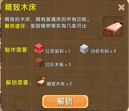 精致木床需要先解锁,才能开启合成制作。