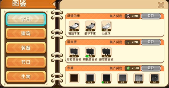 在图鉴里面找到家具一栏,就能找到精致木床啦!