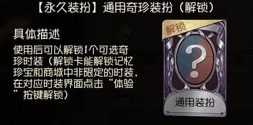 另外,使用永久紫皮卡可以解锁一个可选的奇珍时装,因此永久紫皮卡非常的珍贵。