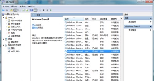 3.右键Winwosfirewall启动或者(属性-自动启动-启动)